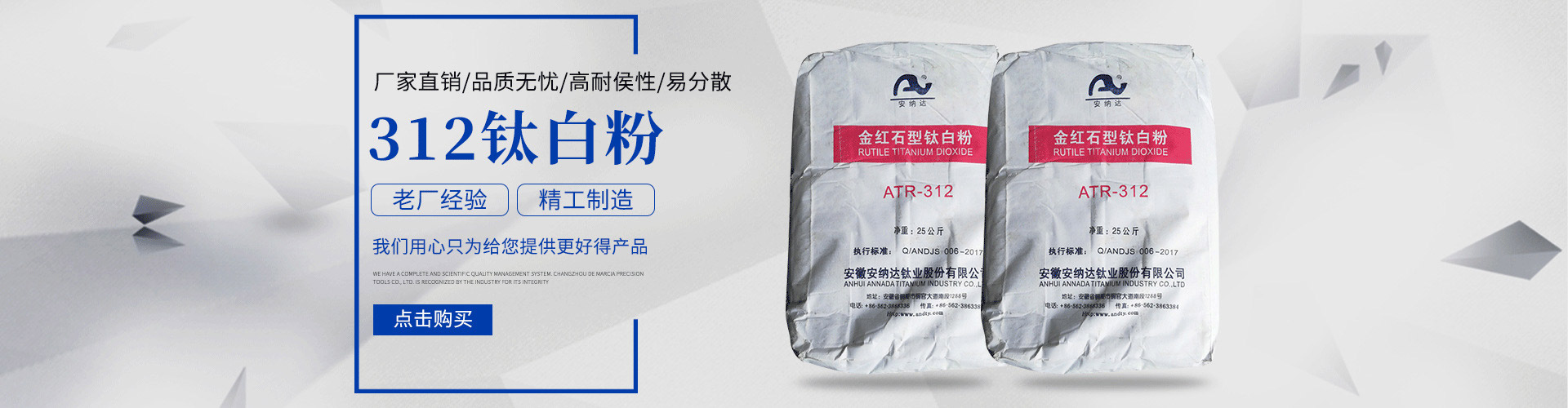 常州安鈦化工有限公司經(jīng)銷批發(fā)的鈦白粉、沉淀硫酸鋇、立德粉、滑石粉、高嶺土、炭黑、云母粉、彩色顏料、氫氧化鈣、硅微粉、氧化鐵紅、氧化鐵黑、金紅石型鈦白粉、銳鈦型鈦白粉、進口鈦白粉暢銷消費者市場,在消費者當(dāng)中享有較高的地位,公司與多家零售商和代理商建立了長期穩(wěn)定的合作關(guān)系。常州安鈦化工有限公司經(jīng)銷的鈦白粉、沉淀硫酸鋇、立德粉、滑石粉、高嶺土、炭黑、云母粉、彩色顏料、氫氧化鈣、硅微粉、氧化鐵紅、氧化鐵黑、金紅石型鈦白粉、銳鈦型鈦白粉、進口鈦白粉品種齊全、價格合理。常州安鈦化工有限公司實力雄厚,重信用、守合同、保證產(chǎn)品質(zhì)量,以多品種經(jīng)營特色和薄利多銷的原則,贏得了廣大客戶的信任。